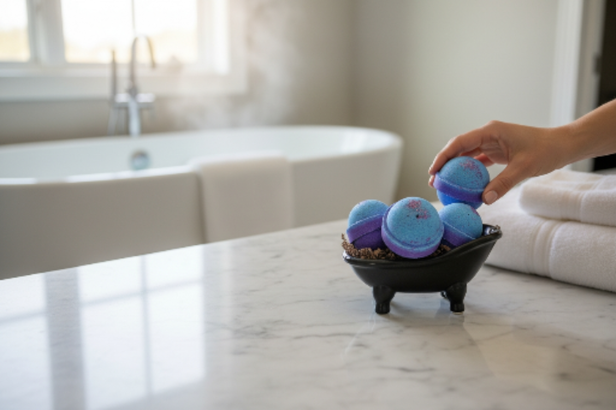 *Allow the bath bomb to fully dissolve in your bath water while not holding so not to cause temporary finger staining.